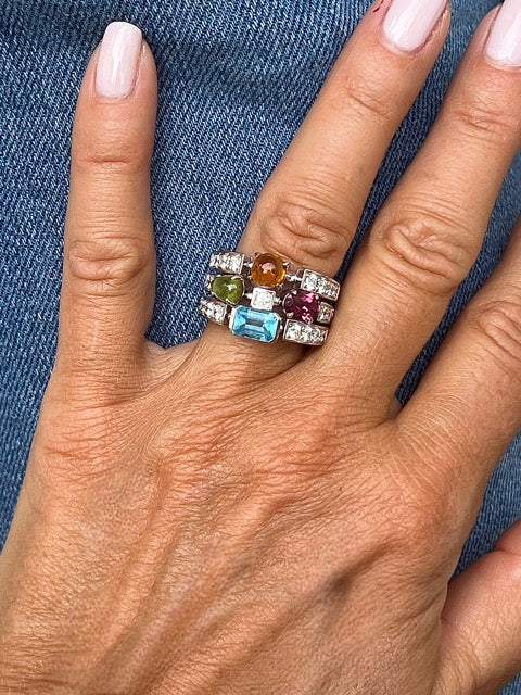 Bague Bulgari, "Allegra", or jaune, diamants, pierres de couleurs.