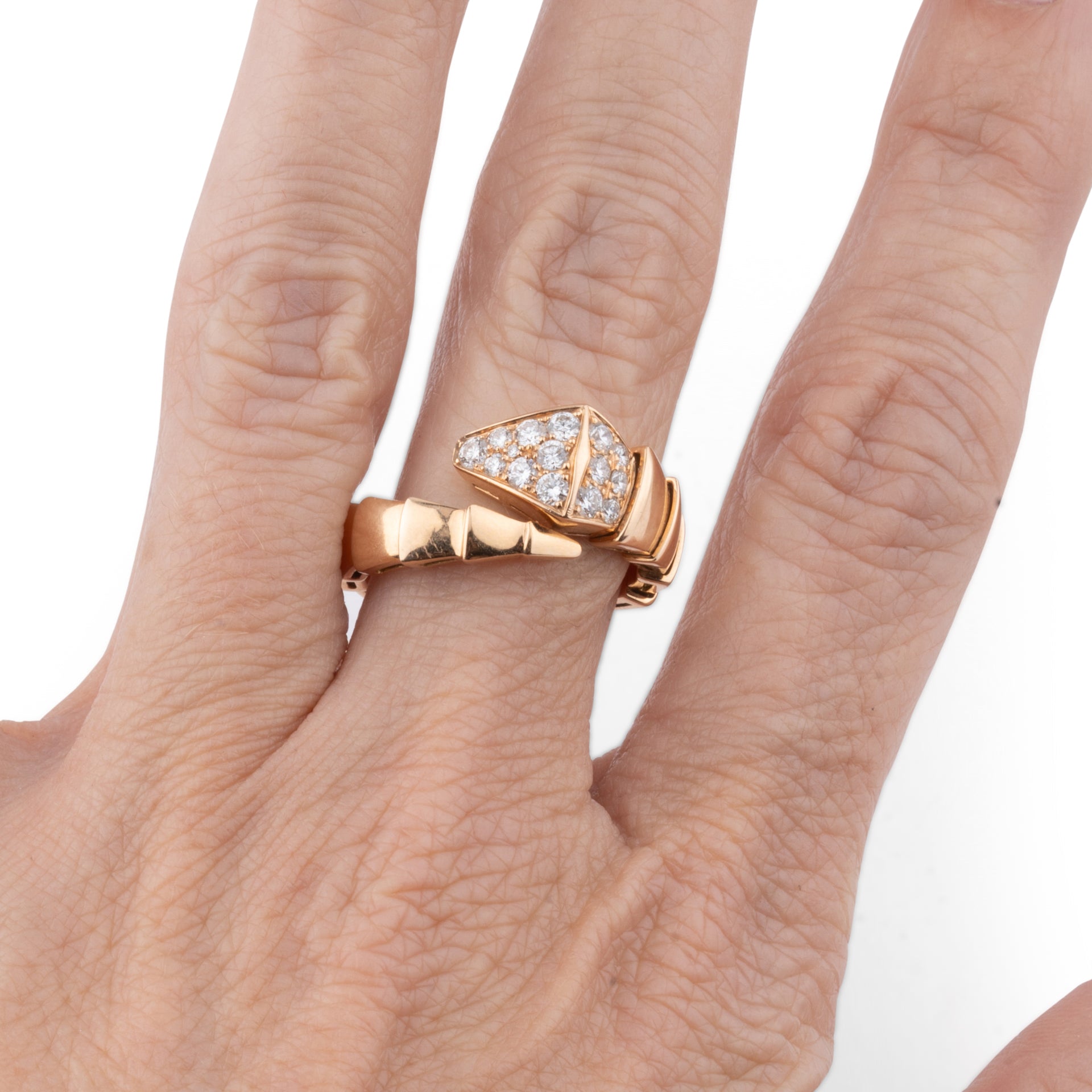 Bague Bulgari, "Serpenti Viper", or rose, diamants.