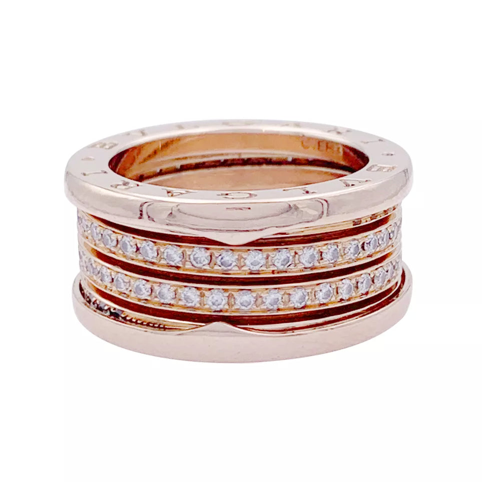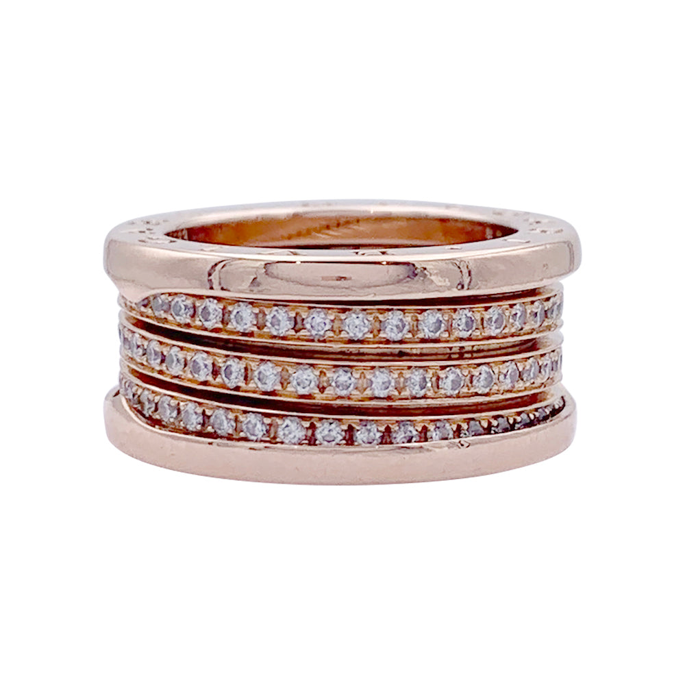 Bague Bulgari, "B.Zero1", or rose et diamants.