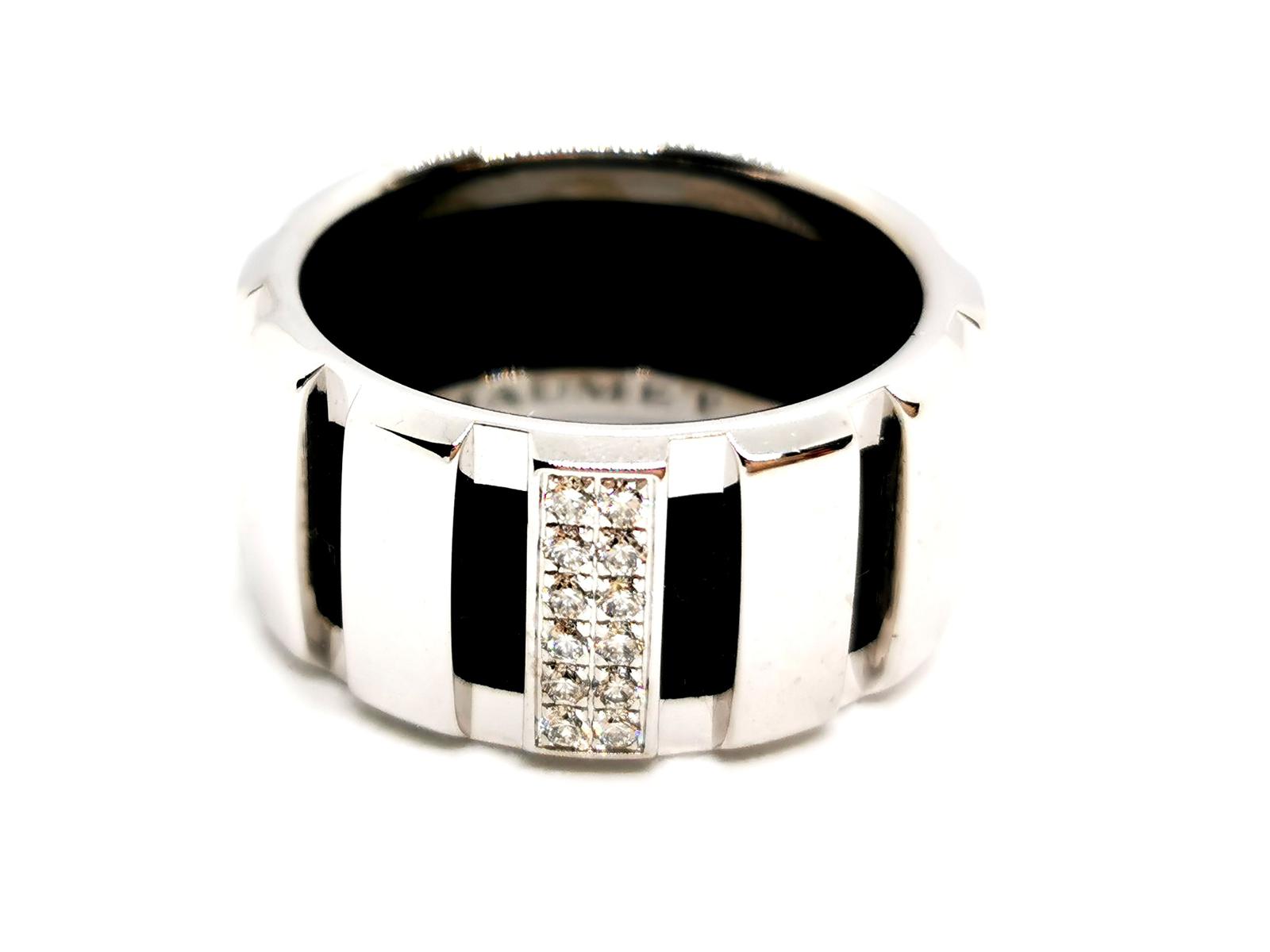 Bague Chaumet, modèle "Anneau", or blanc, diamants et ébène.