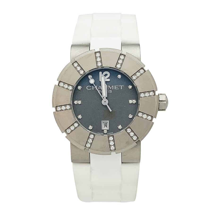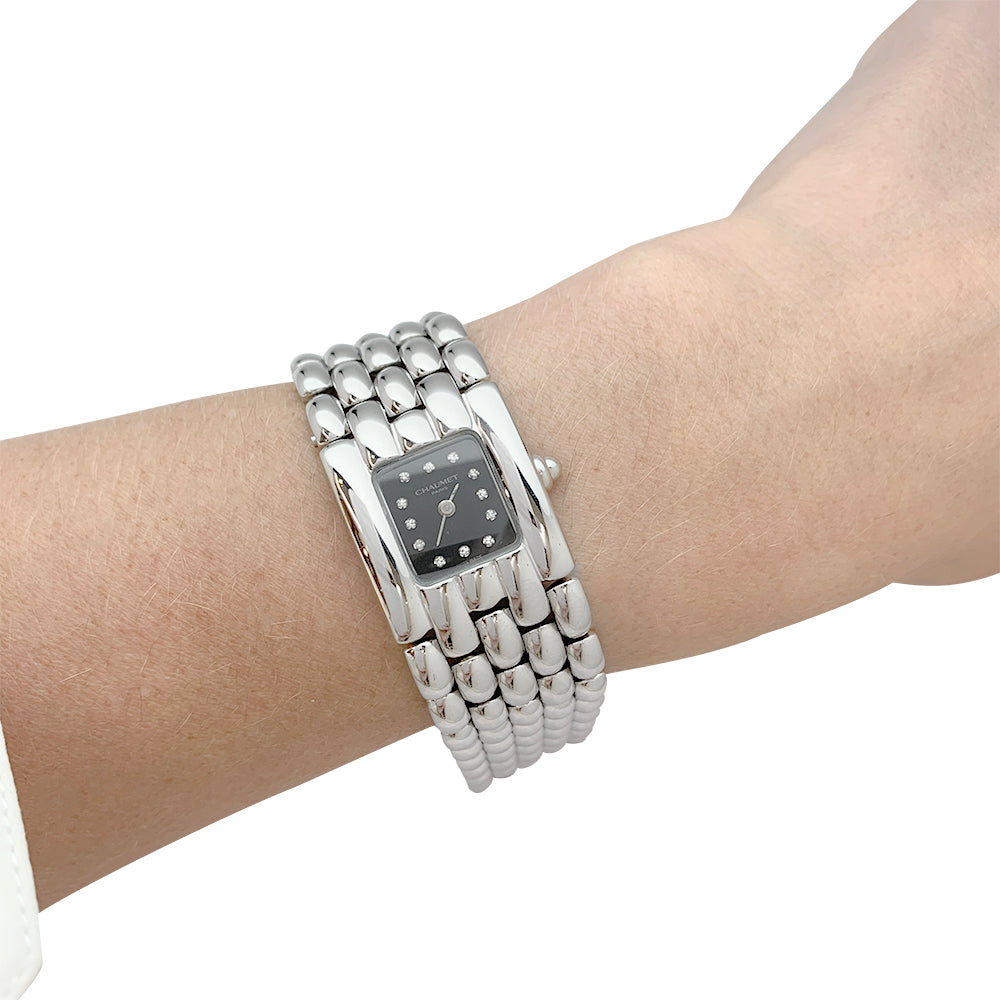 Montre Chaumet, "Khésis", en acier, diamants.
