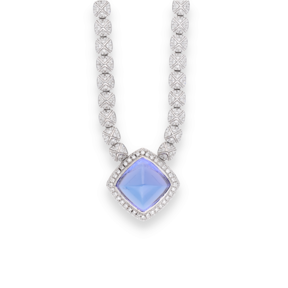 Collier FRED "Pain de sucre" en or gris, tanzanite et diamants.