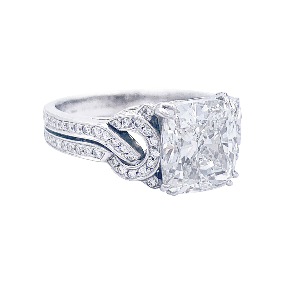 Bague Mauboussin, "Subtil Message", or blanc, diamant coussin.