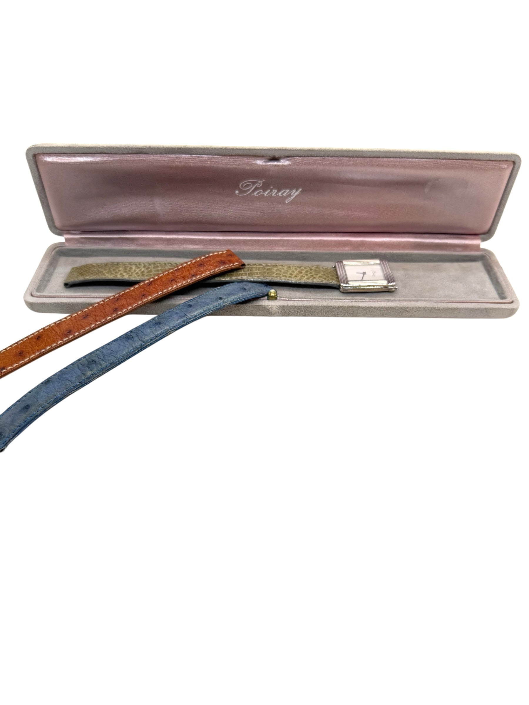 Montre Poiray, "Ma Première", acier et diamants sur cuir.