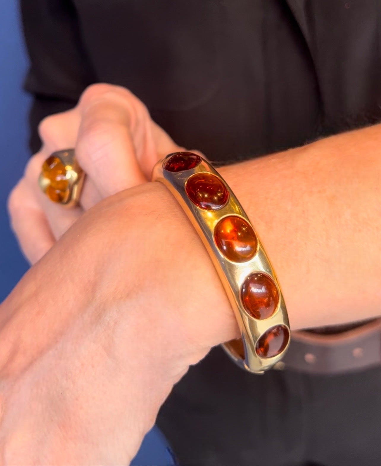 Bague Pomellato, "Bahia", or rose, citrine, saphirs.