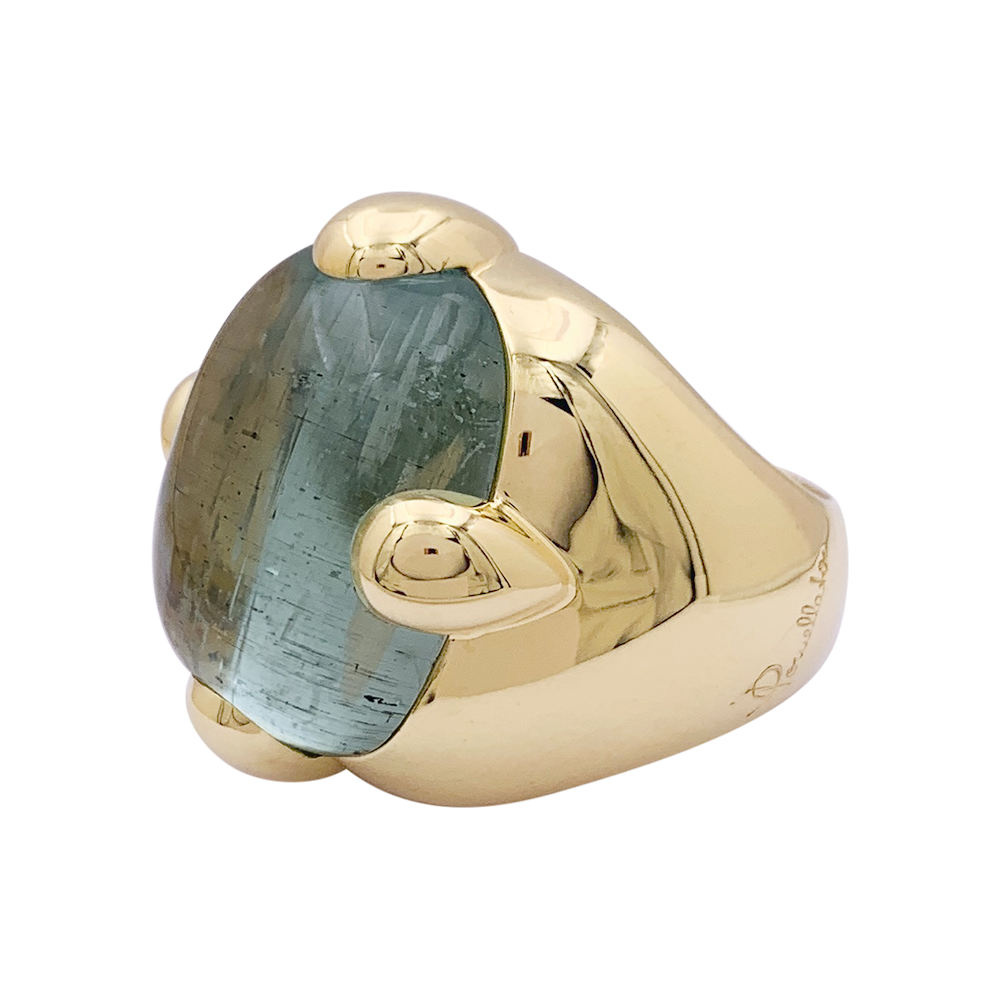 Bague Pomellato, "Griffe", or jaune, diamants, aigue-marine.