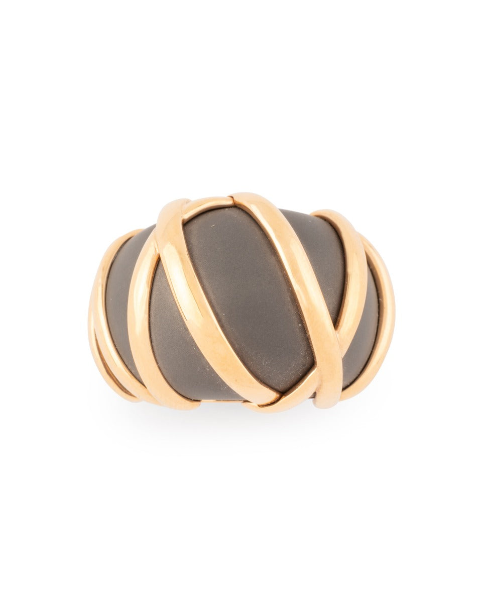 Bague Pomellato, "Nudo Classic", deux ors et quartz fumé.