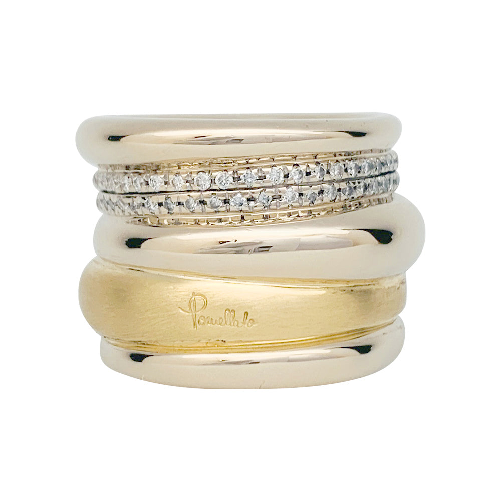 Bague Pomellato en or naturel et jaune modèle "Tubulaire", diamants.