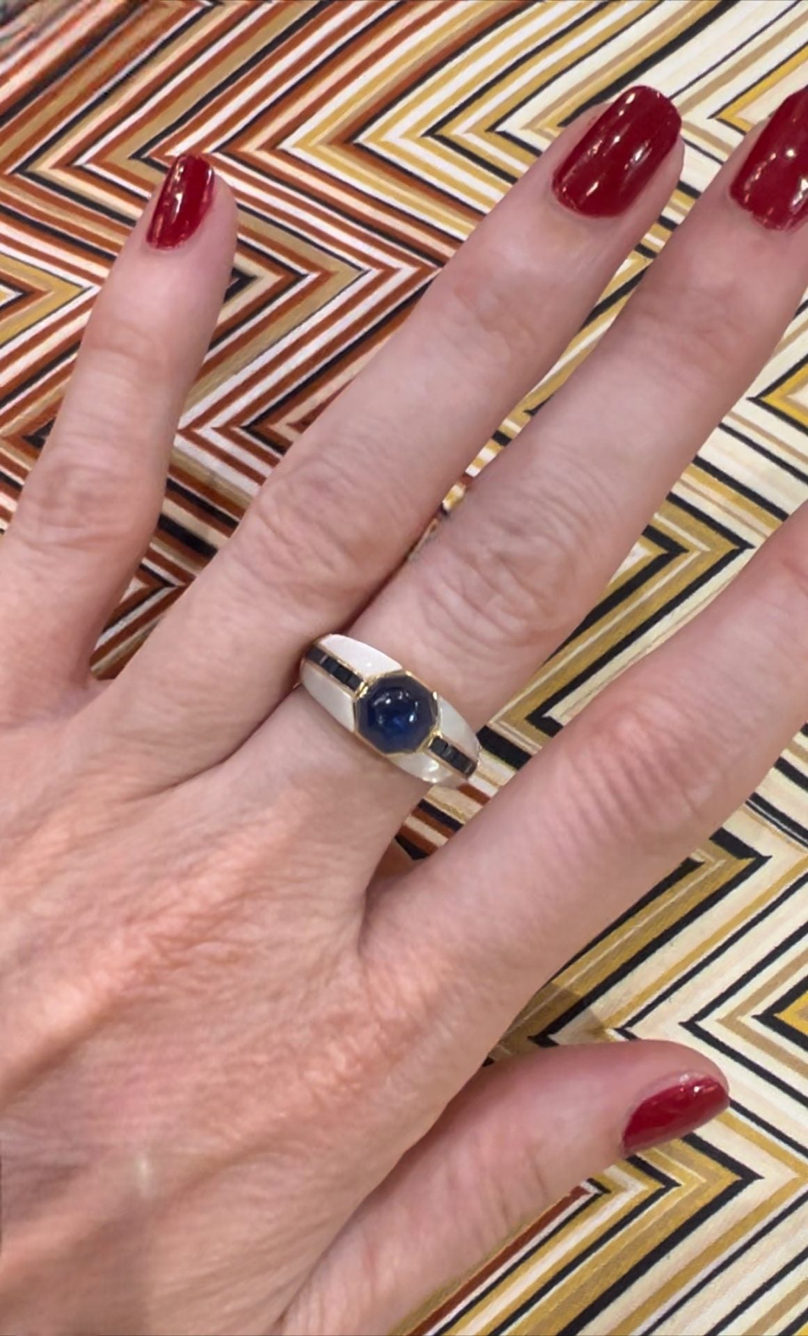 Bague REPOSSI en or jaune 18K, saphirs et nacres.