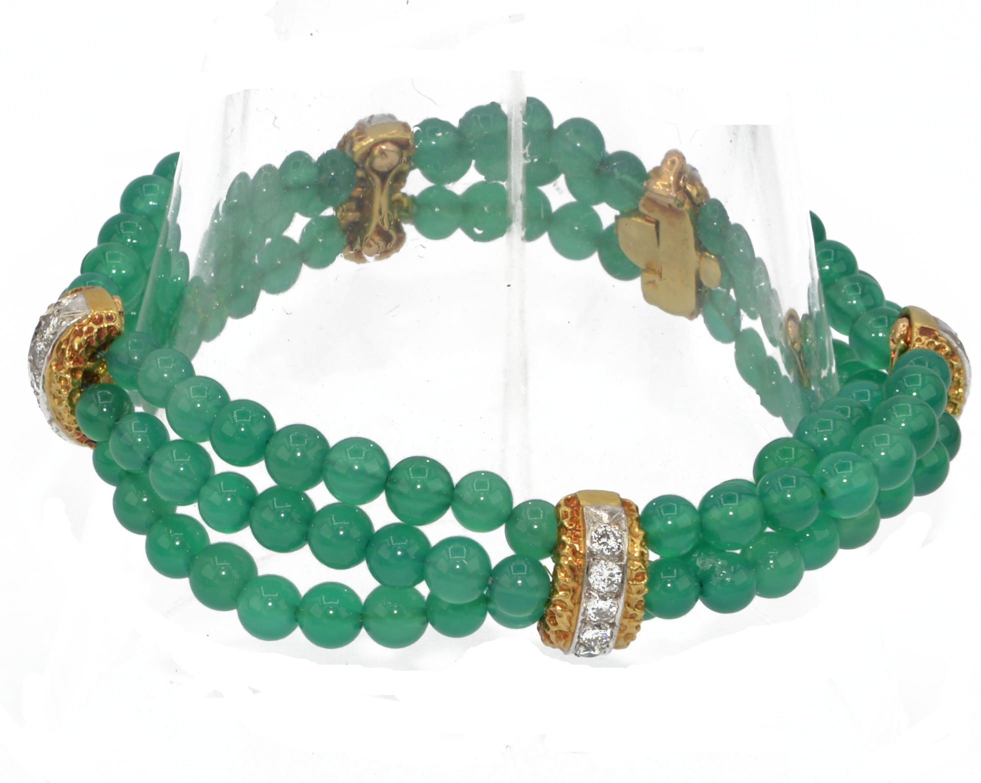 Van Cleef & Arpels 2 bagues en or jaune 18K, diamants et chrysoprase