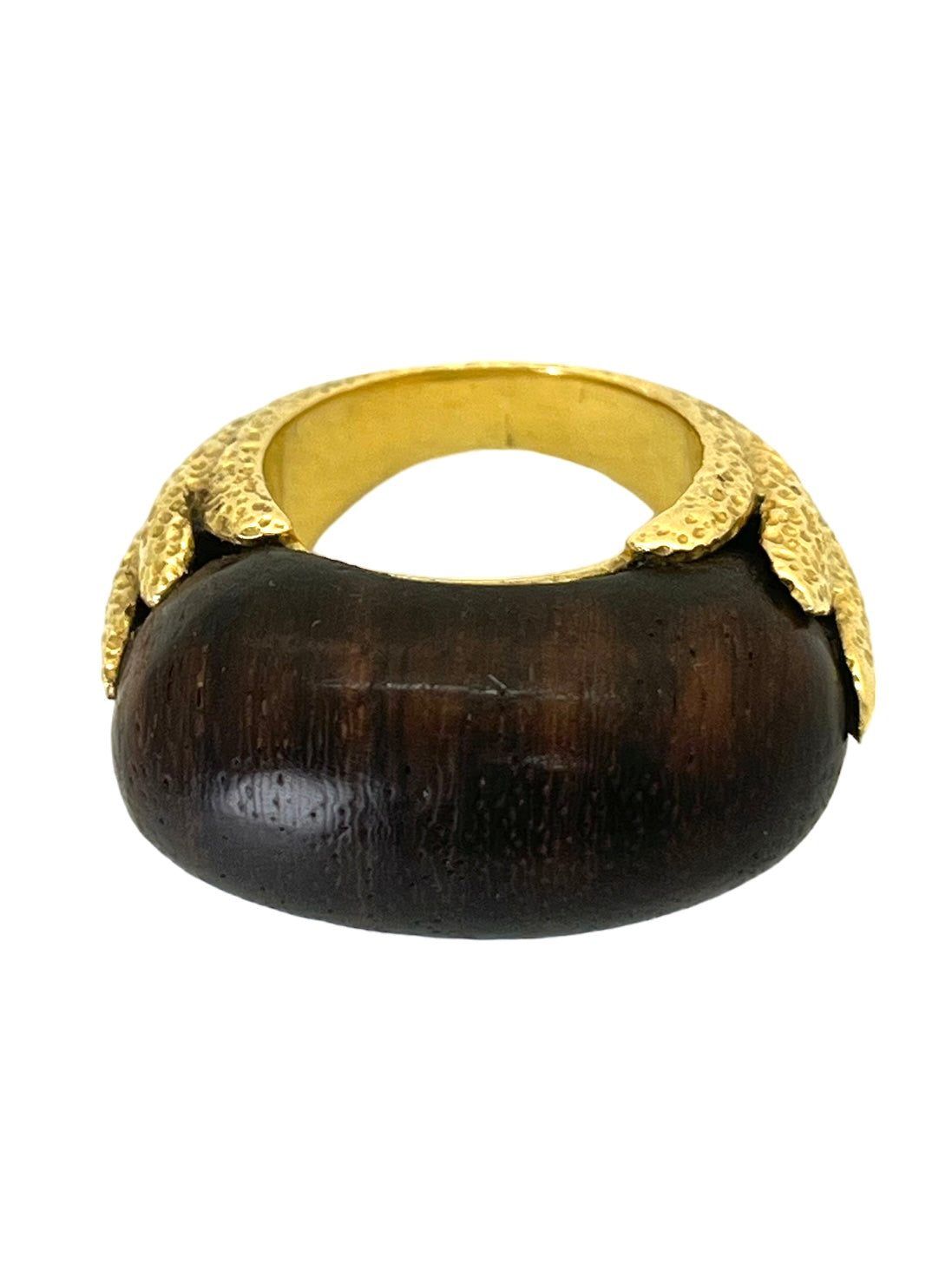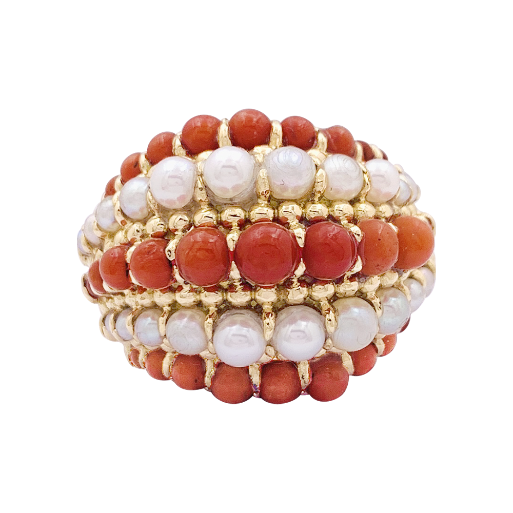 Bague dôme Van Cleef & Arpels, "Twist", or jaune, corail, perles.