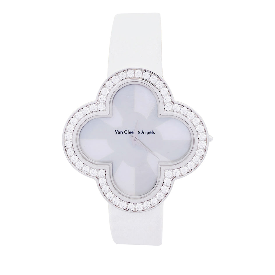 Montre Van Cleef & Arpels, "Alhambra", or blanc, diamants.