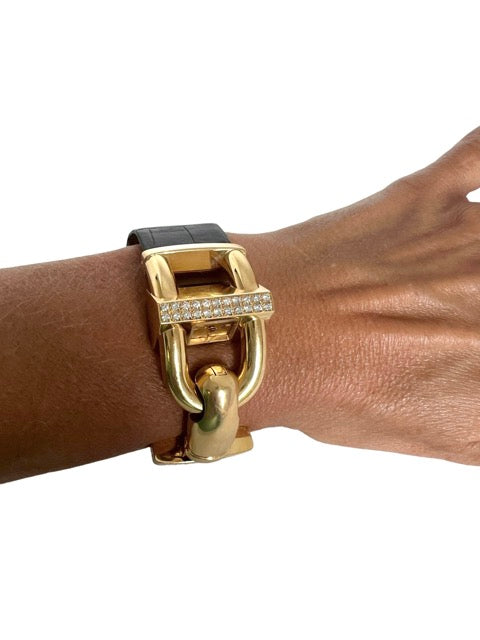 Montre Van Cleef & Arpels "Cadenas" or jaune 18k, diamants sur bracelet cuir