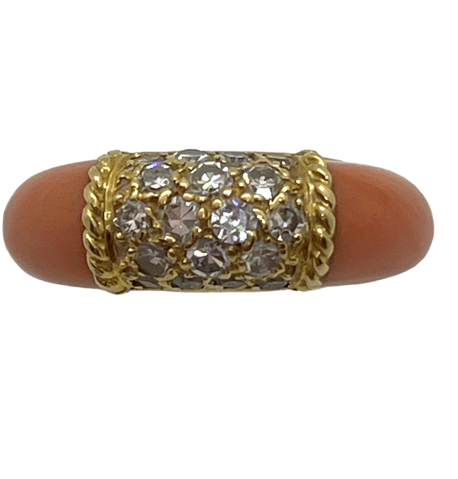 Van Cleef & Arpels, Bague or jaune 18K, corail et diamants