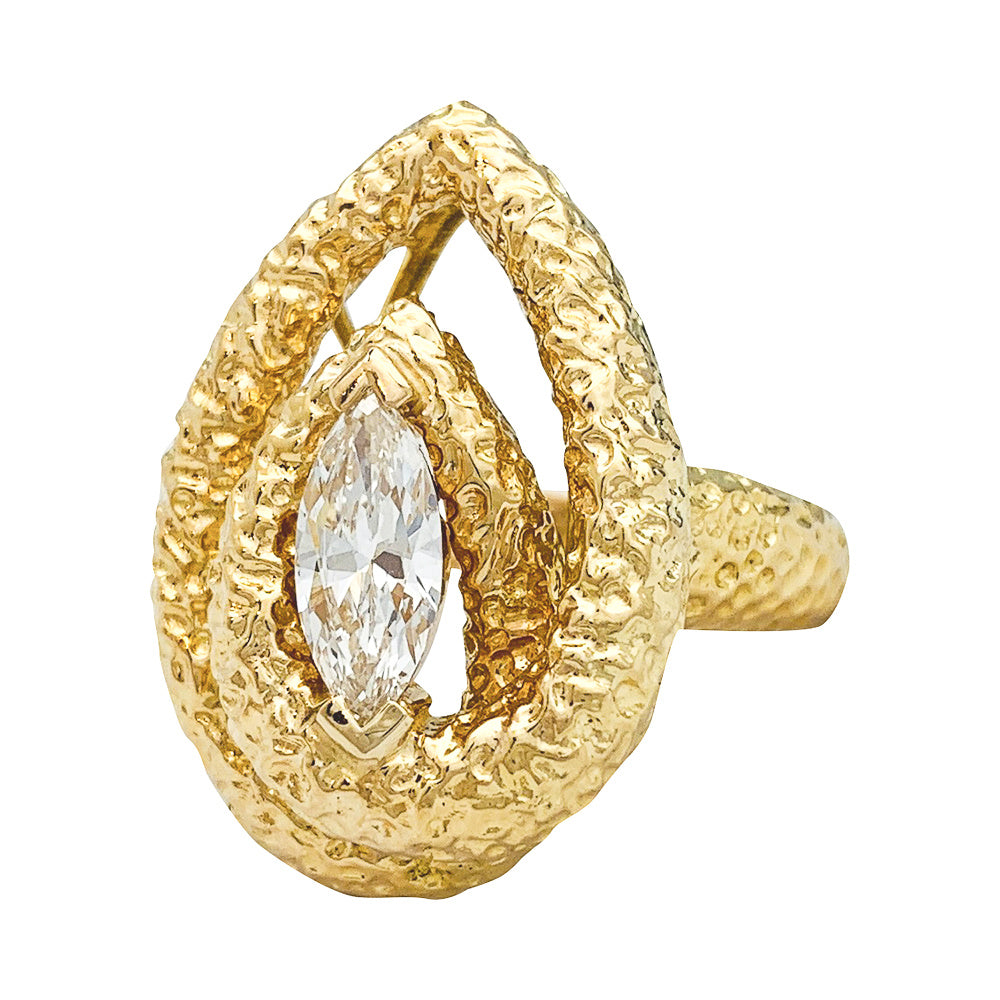 Bague Van Cleef & Arpels or jaune, diamant navette.