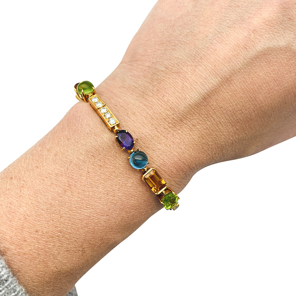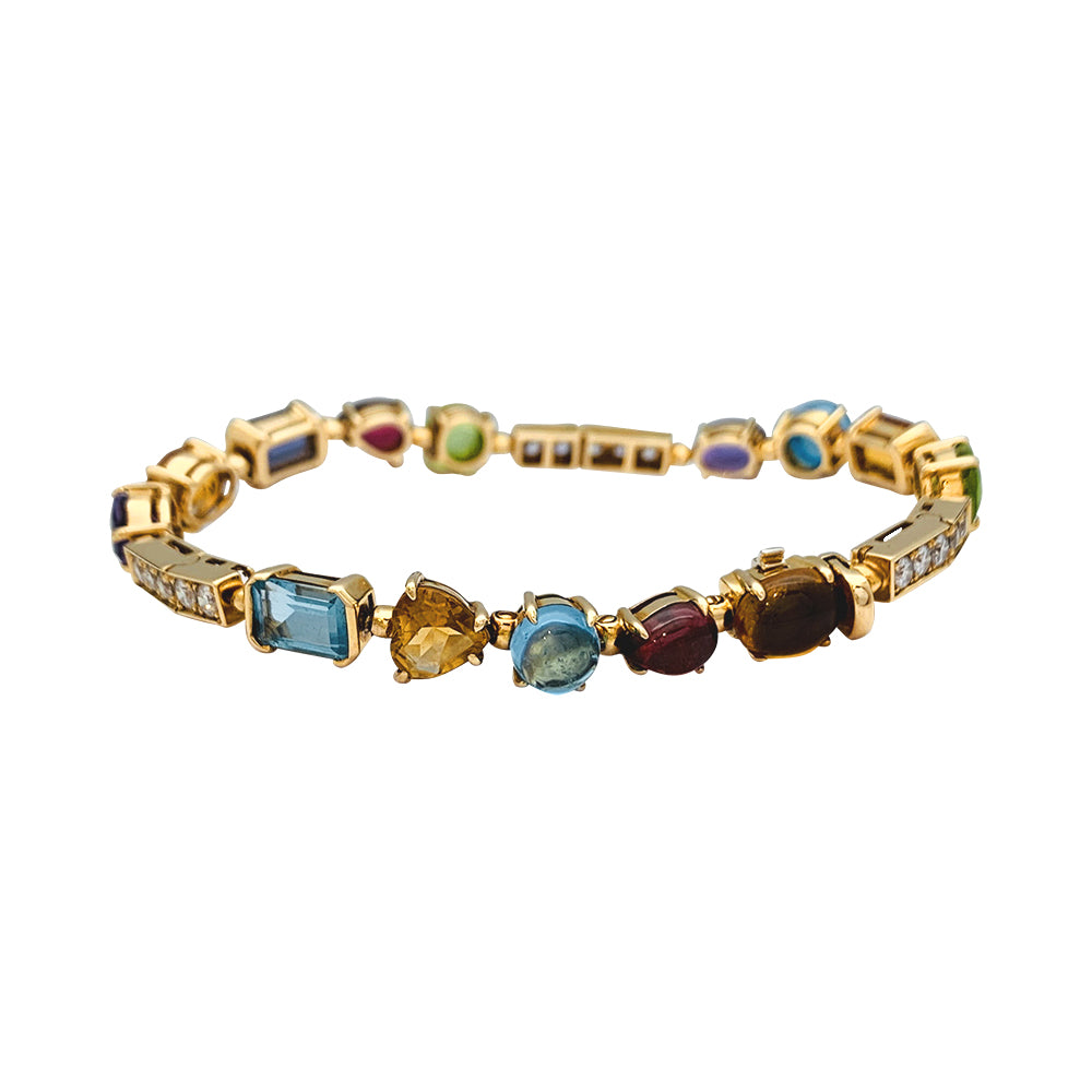 Bracelet Bulgari, "Allegra", or jaune, diamants, pierres de couleurs.